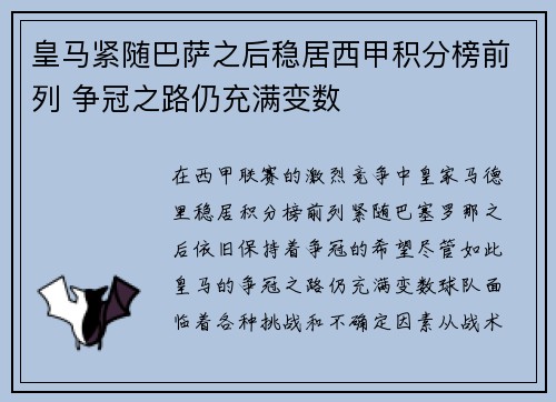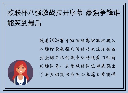 文章摘要:本文通过详细分析波兰在与乌克兰的关键比赛中失利后晋级形势严峻的情况,探讨了波兰队在接下来的关键战役中面临的巨大挑战。首先,文章分析了波兰未能战胜乌克兰的原因,指出双方战术布局、球员状态以及心理因素对比赛结果的影响。接着,重点阐述了波兰晋级形势的困境,包括目前积分榜的差距和后续对手的强大挑战...